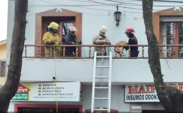 Este domingo, tras una denuncia de una vecina, agentes policiales de la Comisaría Merlo 1ra. Centro y personal de bomberos voluntarios del Cuartel Central se hicieron presentes en un edificio de Maipú y Avellaneda.Al llegar al lugar, el personal de emergencias encontró un perrito en total estado de abandono en un balcón. Luego del rescate, la mascota fue hidratada, alimentada y tras una revisión fue entregada a una vecina, la cual pertenece a una asociación protectora de animales.