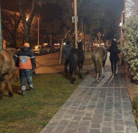 El día sábado por la tarde, mientras un móvil del PPC realizaba un patrullaje de rutina por las calles de Merlo, al llegar a Libertad y Perú observó tres caballos sueltos. Se realizó una averiguación en el barrio y nadie conocía a los dueños, se los contuvo para evitar accidentes, se les consiguió agua para que tomen, se dio aviso a Defensa Civil y a Zoonosis que se hicieron cargo de los animales. Con la ayuda de trabajadores municipales de la Secretaría de Delegaciones trasladaron los animales a un lugar donde puedan estar cómodos y permanecer sin causar accidentes.