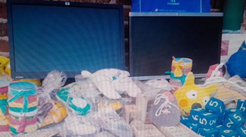 Se trata de peluches, almohadillas y juegos dinámicos, entre otros, que se realizaron con materiales reciclados del establecimiento, tales como botellas de plástico, tapitas, cartones y maderas, y máquinas, hilos, agujas y demás elementos brindados por la asociación civil «Casa del Niño, Mi Amigo Dino», que trabaja tanto a nivel local como en el municipio de Moreno.